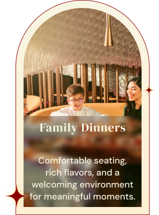 Whether it’s an intimate evening, a social gathering, or a special celebration, our dinner experience is designed to bring people together over refined flavors and a welcoming ambiance.